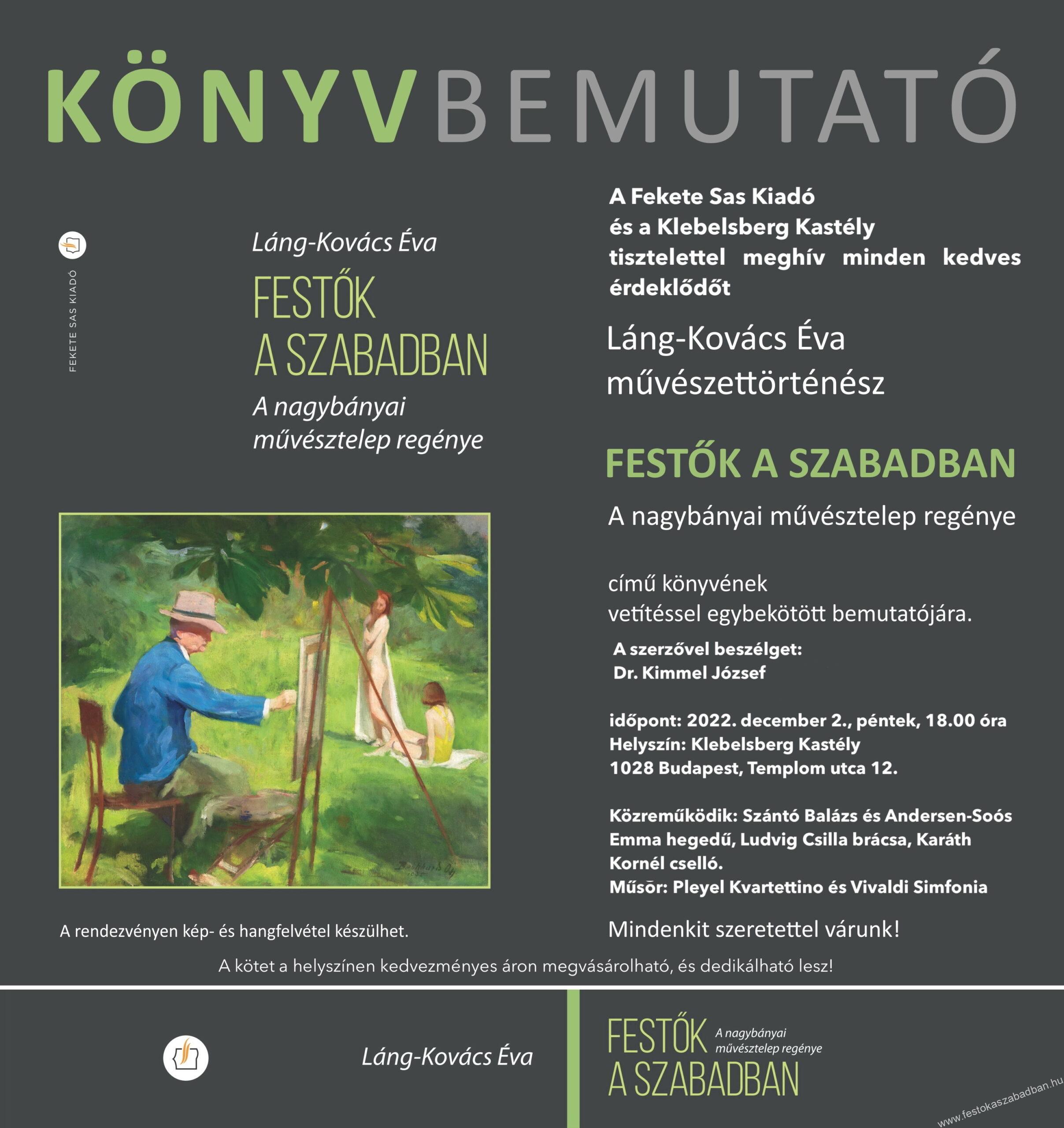 A Fekete Sas Kiadó és a Klebelsberg Kastély sok szeretettel meghív minden kedves érdeklődőt a Festők a szabadban című...