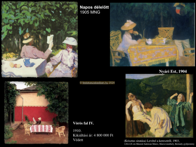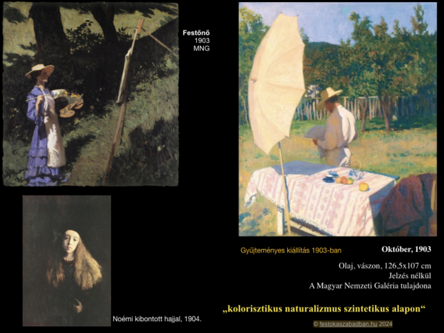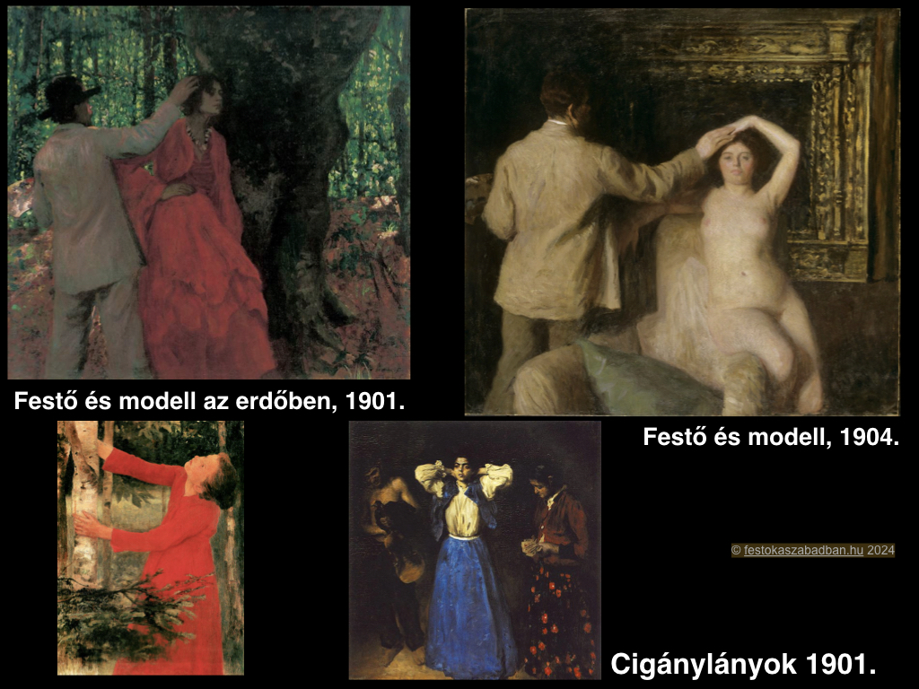 Modelljeivel, segédjével kivonult a szabadba, Nagybányán a Virághegy fáinak árnyékában. Hogy ember és a természet harmóniáját megörökítse.