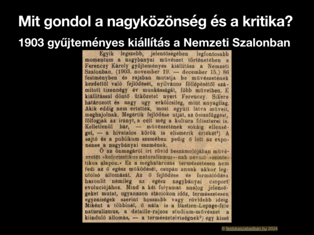 Itt bontakozott ki Ferenczy Károly plein air festészete, aki néhány év alatt festészeti sikereinek köszönhetően a mozgalom vezéregyénisége lett. Képein a természeti elemek jelentősége megnőtt, a művek témái hangsúlytalanokká váltak – lényegében a tiszta látvány visszaadására törekedett a posztimpresszionizmus határán alkotó Ferenczy.